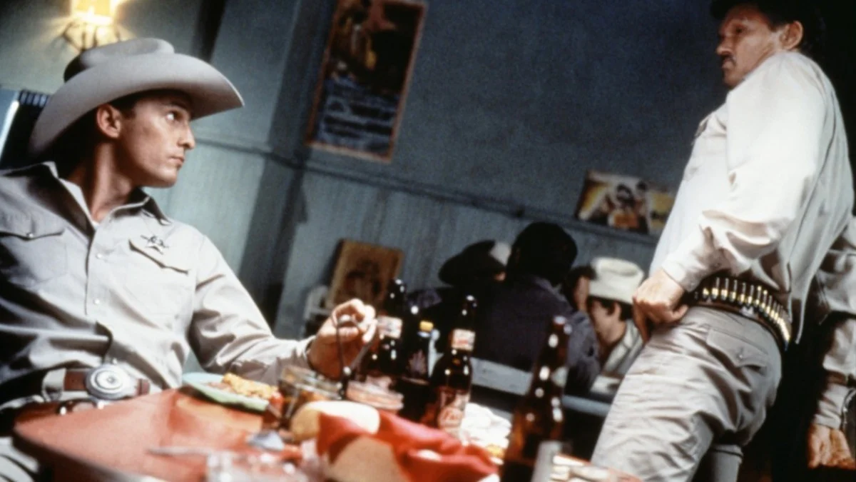 In the small Texas town of Frontera, Sheriff Sam Deeds (Chris Cooper) digs up the past when he finds an old skull in the desert. As he traces the 40-year-old murder of Sheriff Charlie Wade (Kris Kristofferson), Deeds' investigation points toward his late father, the much-loved Deputy Buddy Deeds (a young Matthew McConaughey). Ignoring warnings not to delve any deeper, Sam rekindles a romance with his high school sweetheart (Elizabeth Pena) while bringing up old tensions in the town and exposing secrets long put to rest.